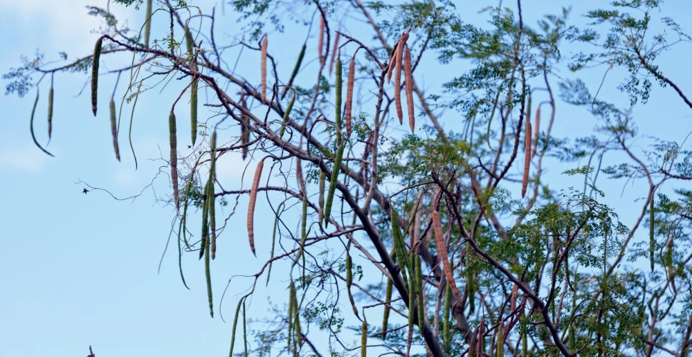 Moringa je až 12 m vysoký listnatý strom, jeho plody jsou podélně hluboce žebrovité mírně trojhranné